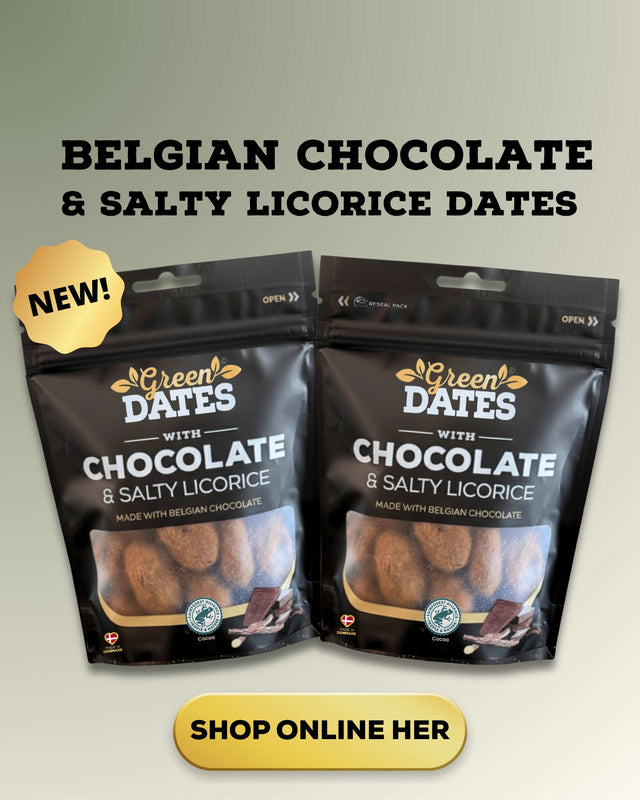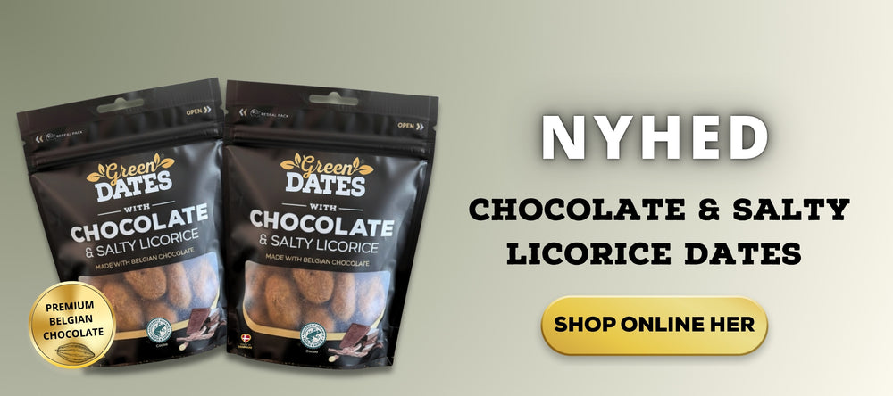 I 2015 besluttede vi os for at tage vores passion for dadler et skridt videre og udviklede som de første på markedet dadler med smag. Der fik vi idéen om at kombinere dadler med lakrids og kakao.